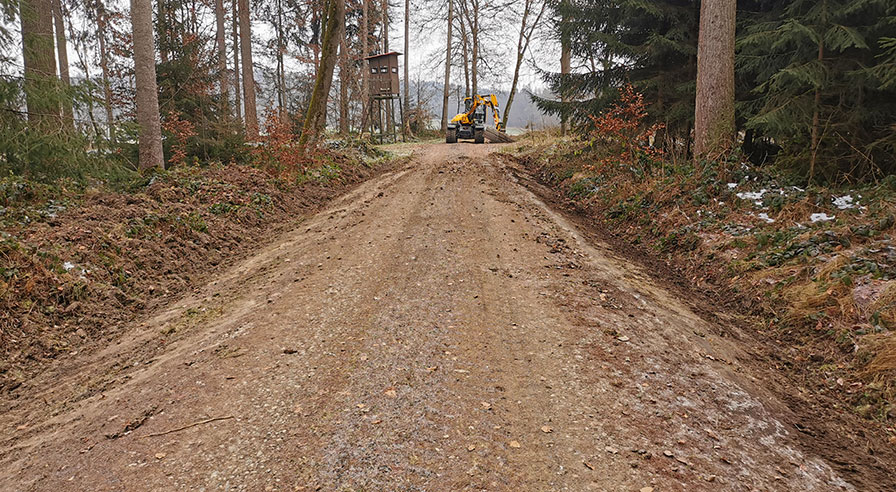 Die regelmäßige Pflege von Wegen dient dazu, Bewuchs auf der Fahrbahnoberfläche zu unterbinden und das charakteristische Wegeprofil zu bewahren oder wiederherzustellen. Nur so kann Oberflächenwasser schnell und ungehindert abfließen.